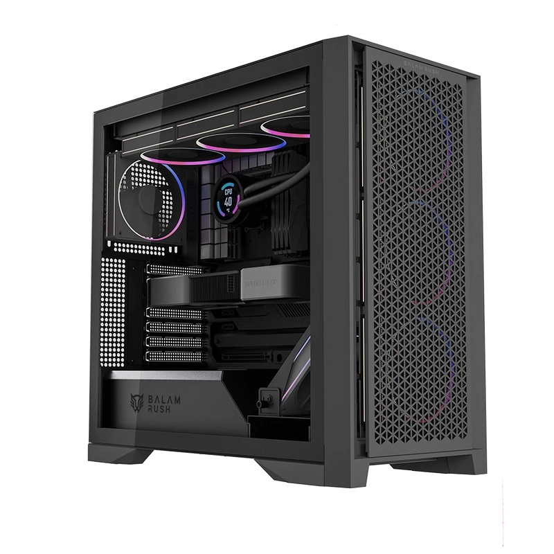 Recomendadísimo: Gabinete gamer balam rush carbono polar twin mate 9900 / media torre / atx - m-atx - itx / ventiladores incluidos / iluminacion argb / soporte para enfriamiento liquido y aire / negro /. Cumple y se siente de primera. Se integra bien a mi flujo de trabajo.