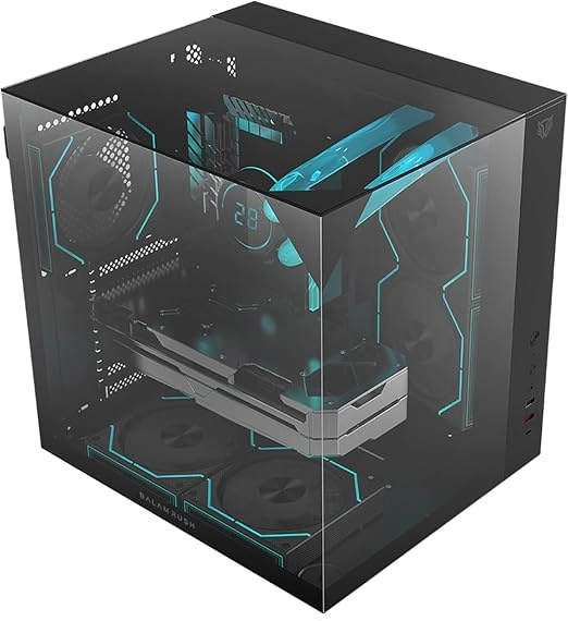 Gabinete gamer balam rush tank majestic 6600 / media torre / atx - micro atx - itx / ventiladores argb / cristal templado / soporte p/ tarjeta grafica 330 mm / dual chamber / negro / br-941525