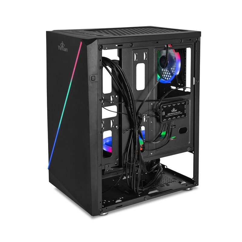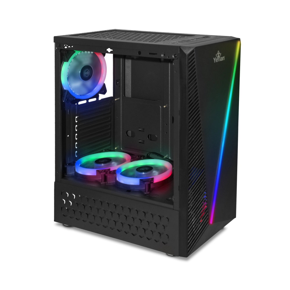 Gabinete gamer crescent master ych-lar7-01bk microatx/atx media torre/cristal templado/ 3 vent argb