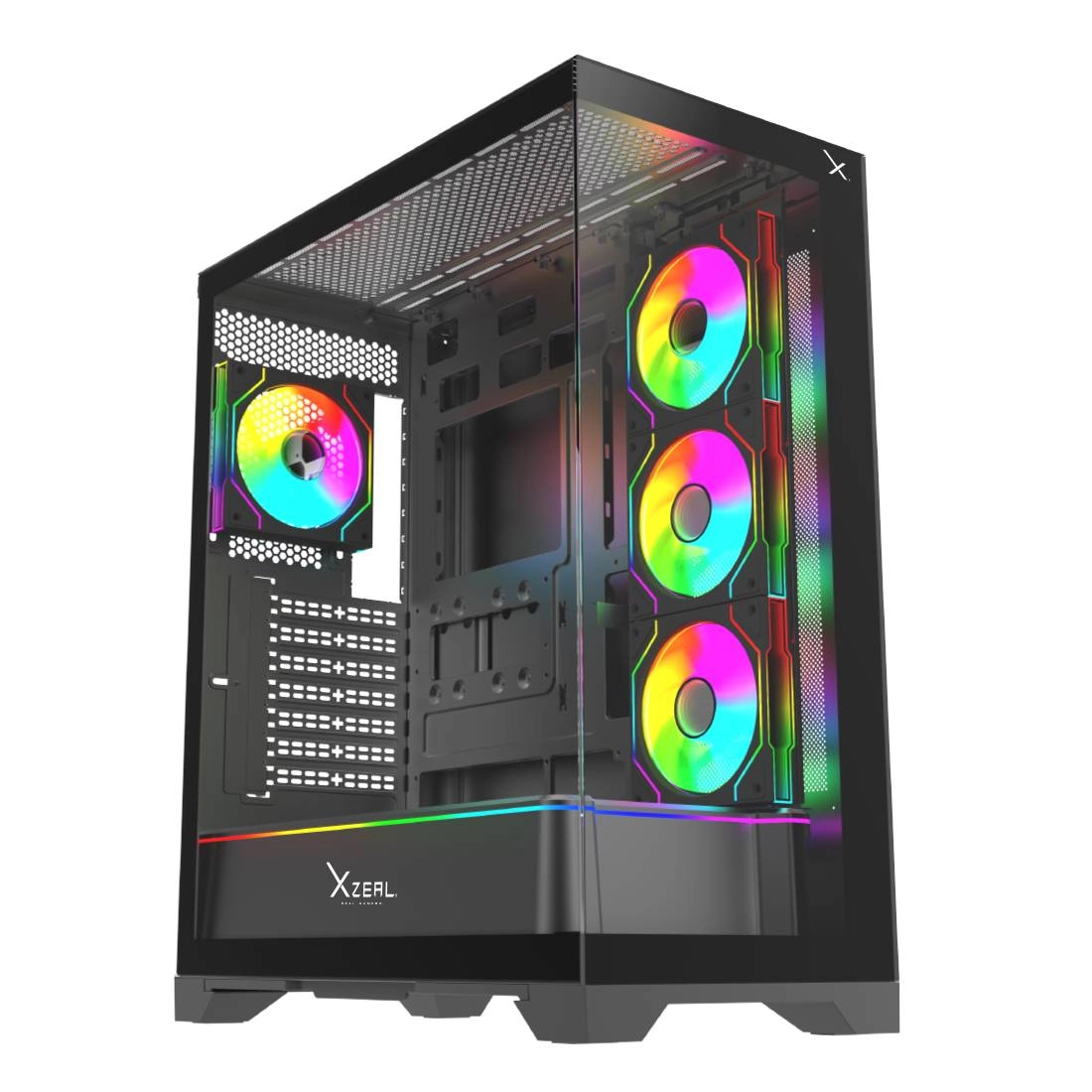 Gabinete gamer xzeal full tower xz160 - eatxatx panel der.front. cristal templado 1xusb2.0 + 1xusb3.0 + 1x usb tipo c+ 1x3.5mm + 4 ventiladores argb negro