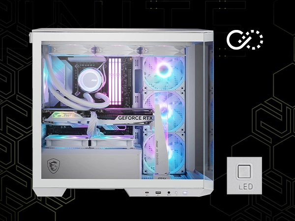 Gabinete msi (mag pano 100r pz white) blanco,vidrio templado,4*ventilador, atx, sin fuente