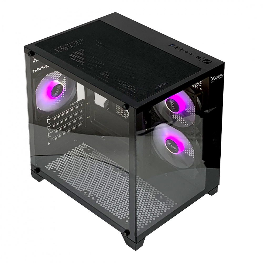 Gabinete xzeal panzer ii cubo m-atx/itx xzgamc2b 2xusb1.0 + 1x usb3.0 + 3.5 mm + 3 fans argb