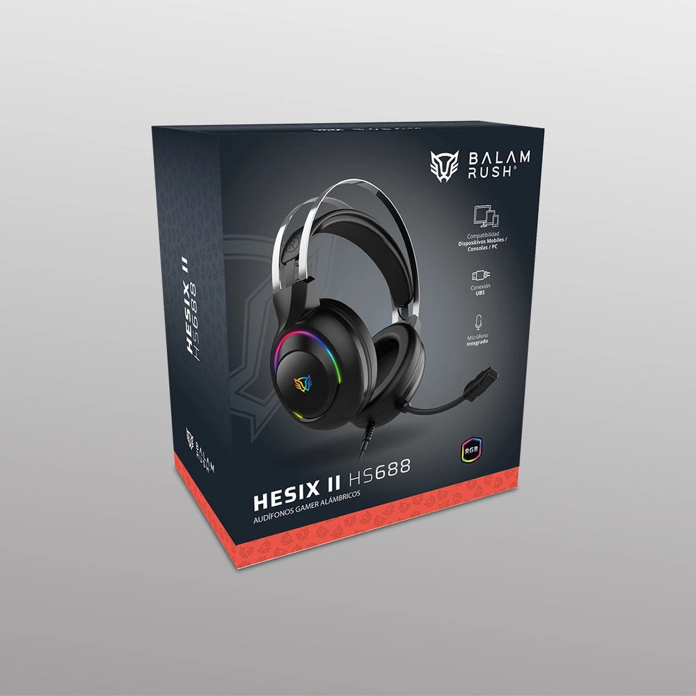 Headset gaming alambrico hesix ii hs688 balam rush azender series sonido envolvente - alta voces 50mm