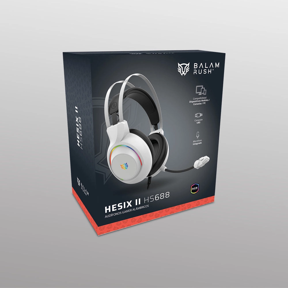 Headset gaming alambrico hesix ii hs688 balam rush azender series sonido envolvente - alta voces 50mm, microfono omnidireccional, conexión 3.5mm + usb largo
