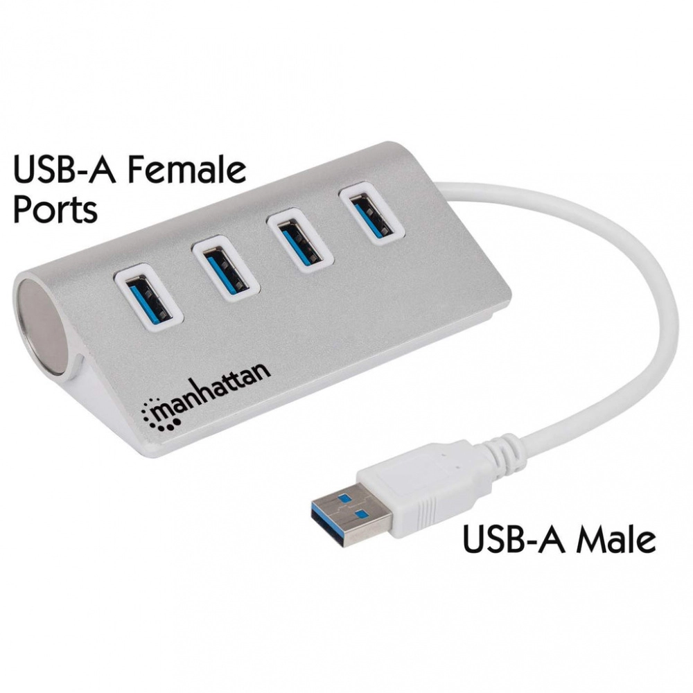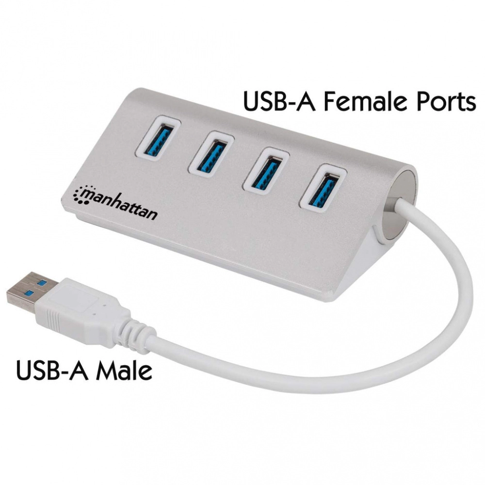 Hub usb manhattan 163767 - usb 3.0, 5000 mbit/s, 4 x usb 3.0 a, blanco, 4 puertos