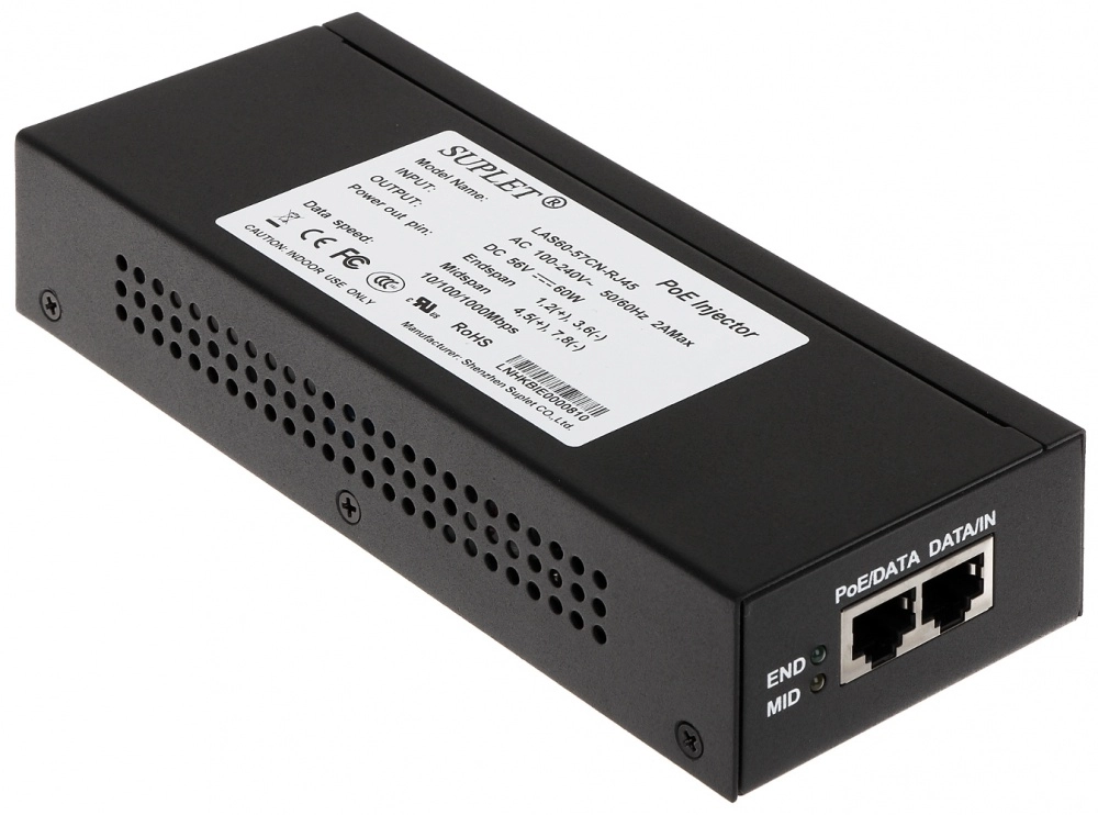 Inyector super hi-poe hikvision - 60 w, 10, 100, 1000 mbit/s, 100 - 240, 50 - 60