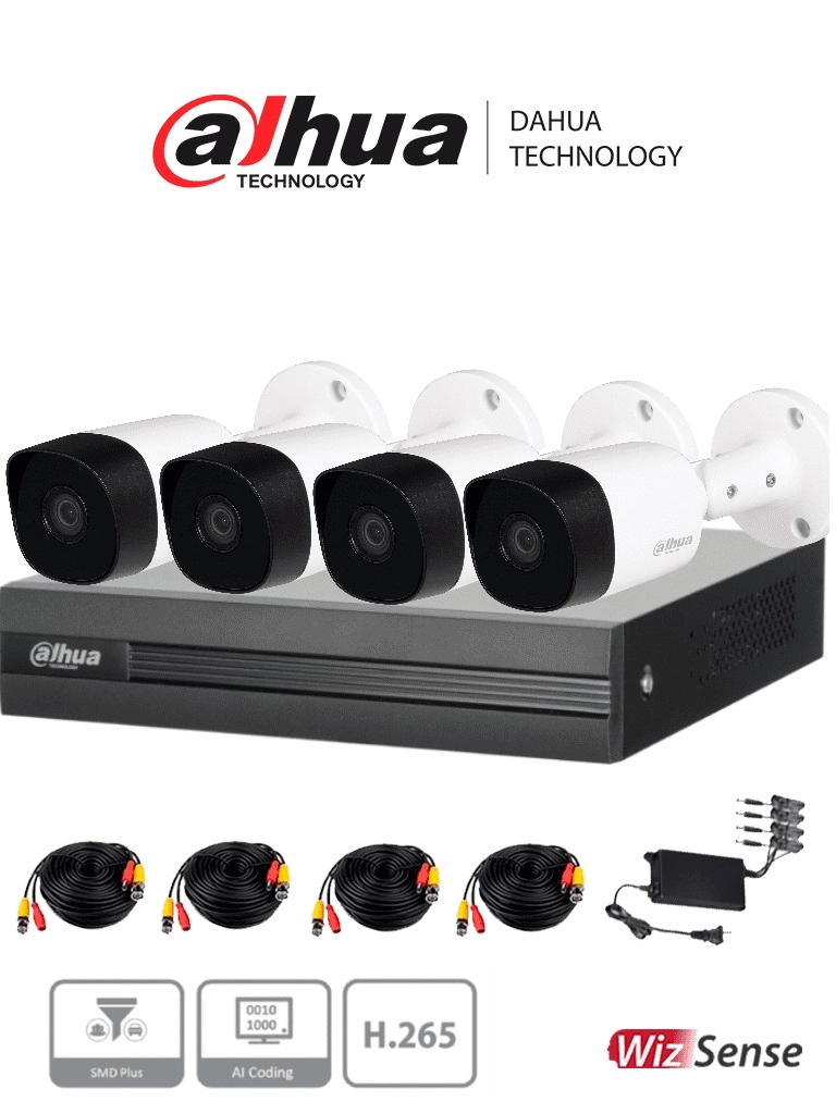 Kit de videovigilancia dahua technology dh-kitxvr1b04h-i4-b2a51n-0280b-s2 - interior y exterior, alámbrico, 4, 2592 x 1944 pixeles, 5 mp