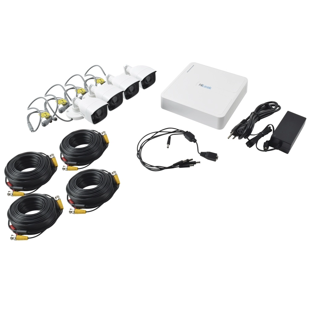 Kit de vigilancia hilook cctv, dvr 4 canales, 4 camaras bala, 1mp, ip66, con accesorios