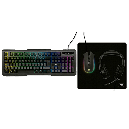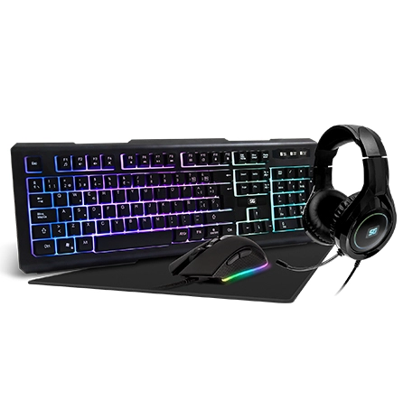 Kit teclado gamer iluminado - mousepad, diadema y mouse vorago start the game kmh-501, usb alámbricos, 4000 dpis