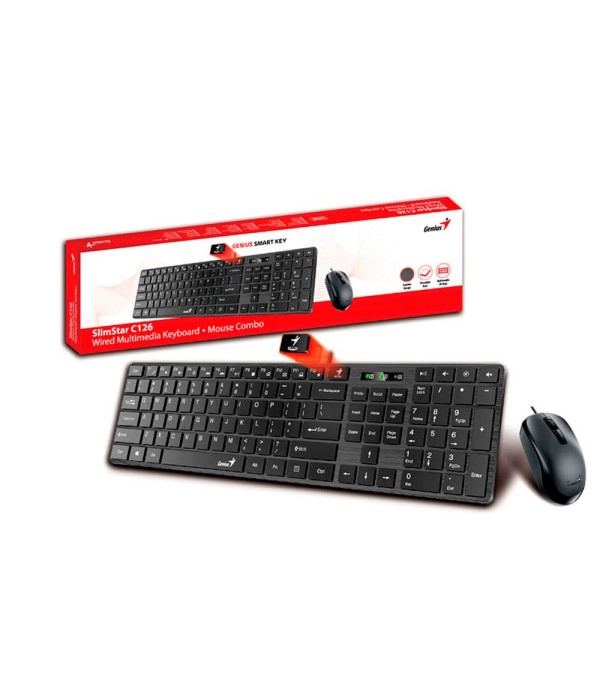 Kit teclado y mouse genius slimstar c126, alambrico, usb, color negro