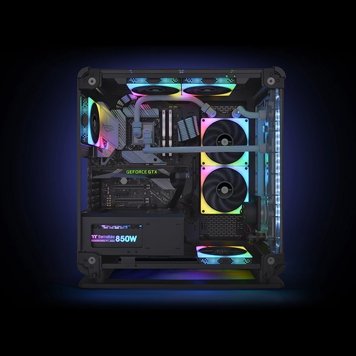 Kit thermaltake toughfan, presion estatica, 2000 rpm, rgb, controlador, 3 pzas
