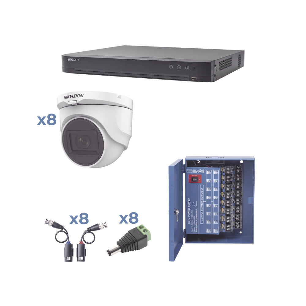 Kit turbohd 1080p / dvr 8 canales / 8 cámaras turret (exterior 2.8 mm) / conectores / transceptores / fuente de poder