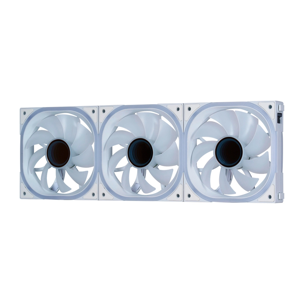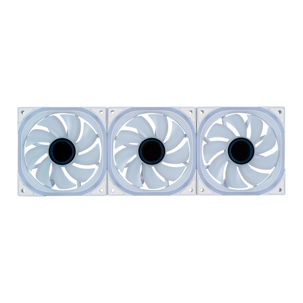 Kit ventiladores modulares game factor fkg500 - 3 fans 120mm, 58 cfm, rgb, control remoto blanco