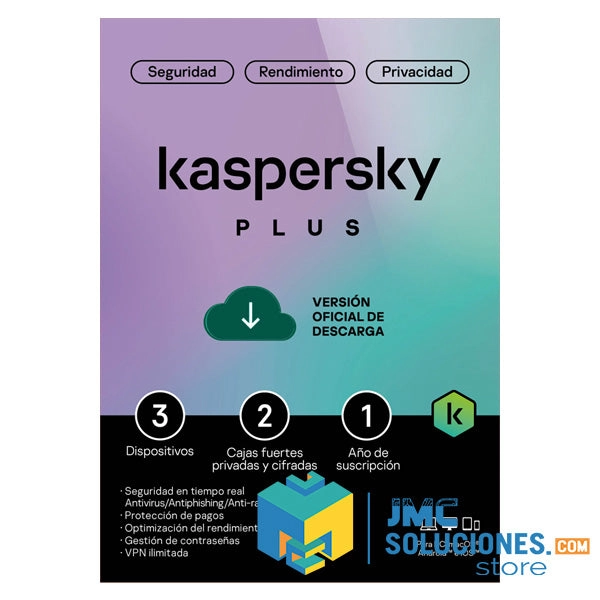 Licencia electronica esd kaspersky plus 3 dispositivos 2 cuentas kpm 1 ano base