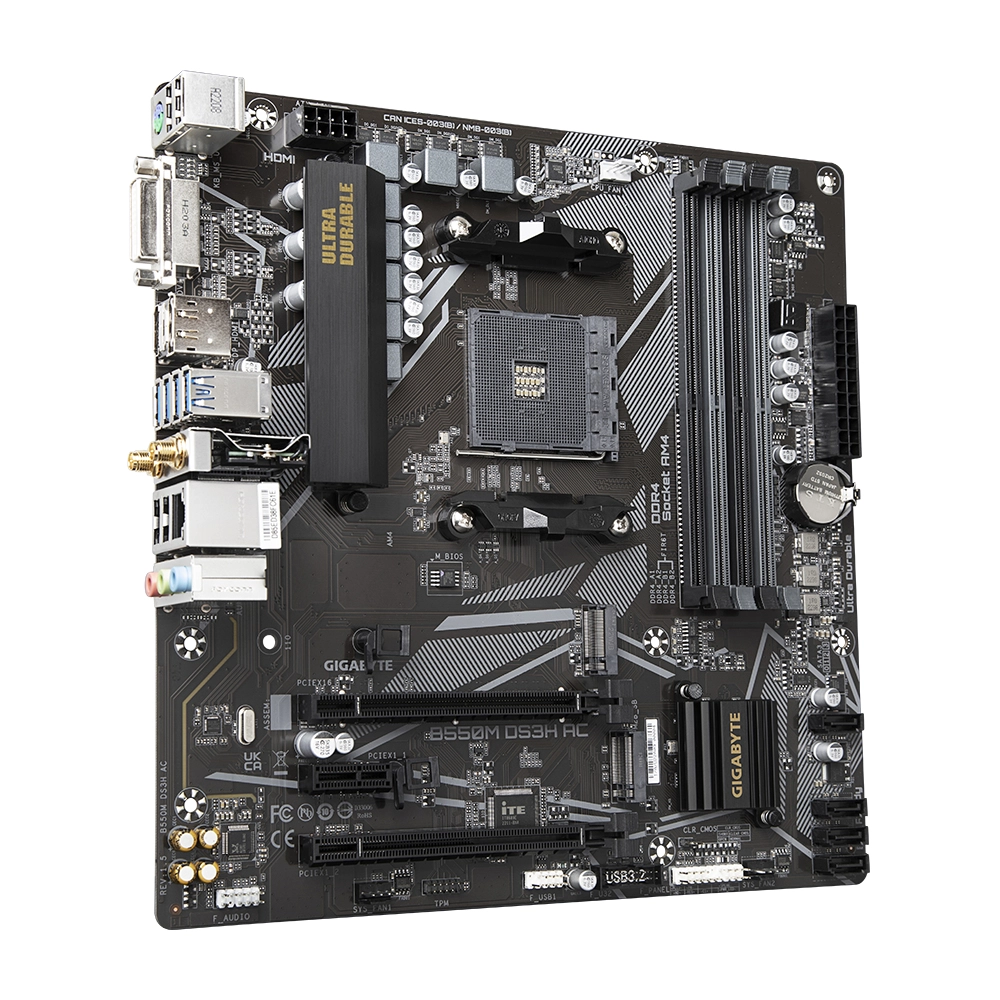 Mb gigabyte amd b550m ds3h ac s-am4 5a gen/4x ddr4 2666/dp/hdmi/m.2/6x usb 3.2/usb-c/wifi/bluetooth/micro atx/gama media/gamer