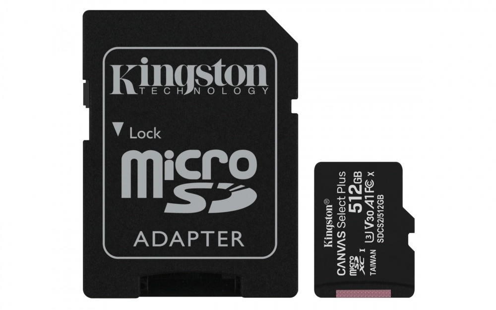 Memoria kingston micro sd canvas select plus 512gb uhs-i clase 10 c/adaptador (sdcs2/512gb)