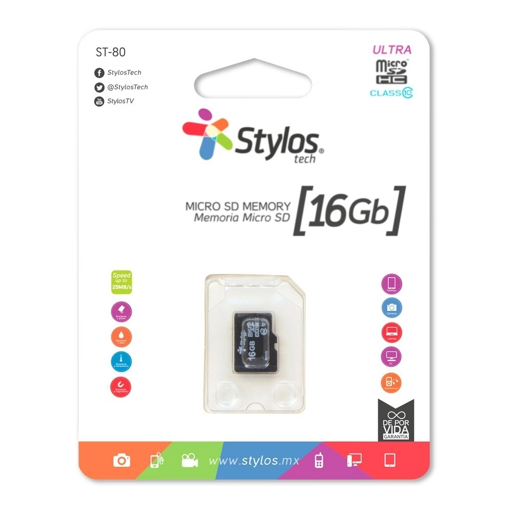 Memoria micro sd 16gb s/a stylos. stmsds2b