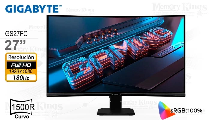Monitor gigabyte gs27fc 27", 180hz, full hd, 1ms, hdmidp, bocinas, negro