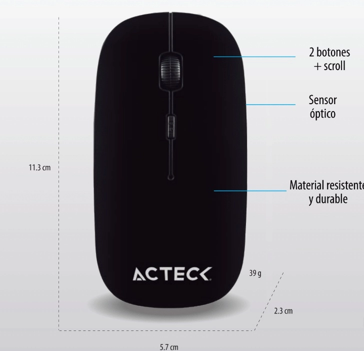 Mouse acteck inalámbrico 2.4 ghz 1600 dpi 3 lvls windows-linux-mac os slim negro optimize mi210
