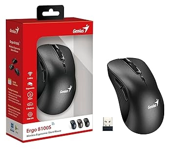 Mouse ergonomico inalambrico genius ergo 8100s, usb, 2.4ghz, 1600dpi, 6 botones silencioso, negro