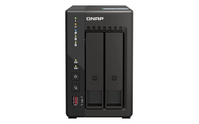 Nas qnap ts-253e-8g / 2 bahias / torre / intel celeron 4nucleos 2.6ghz / 8gb ram ddr4 / lan 2,5gbe2 / wake on lan / hdmi2 / usb 3.22 / usb 2.0 2 / soporta m.2 22802 / no incluye discos