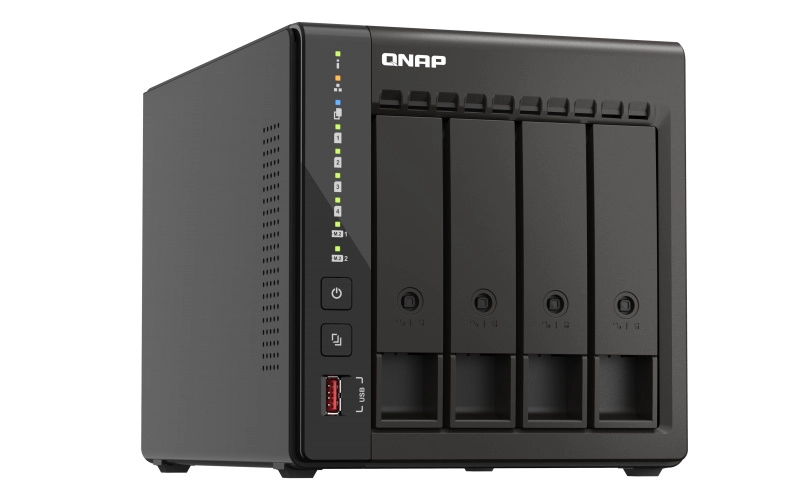 Nas qnap ts-453e-8g / 4 bahias / torre / intel celeron 4nucleos 2.6ghz / 8gb ram ddr4 / lan 2,5gbe2 / hdmi2 / usb 3.22 / usb 2.02 / soporta m.2 22802 / hot swap / no incluye discos