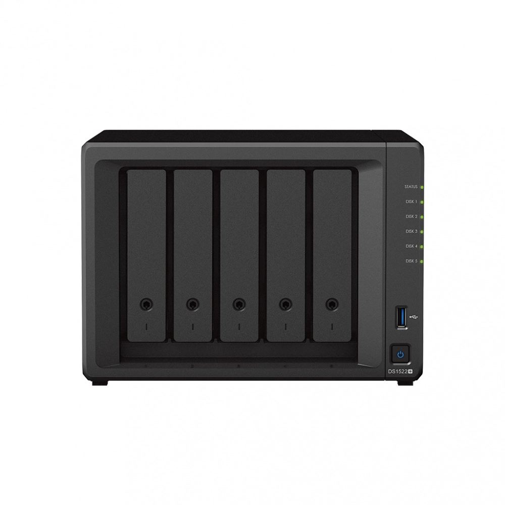 Nas synology ds1522+ / 5 bahias/ doble nucleo 2.6ghz/8 gb ddr4/lan gigabit x4/usb 3.2 x2/ hasta 90 tb hot-swap/ amd ryzen r1600 /no incluye discos