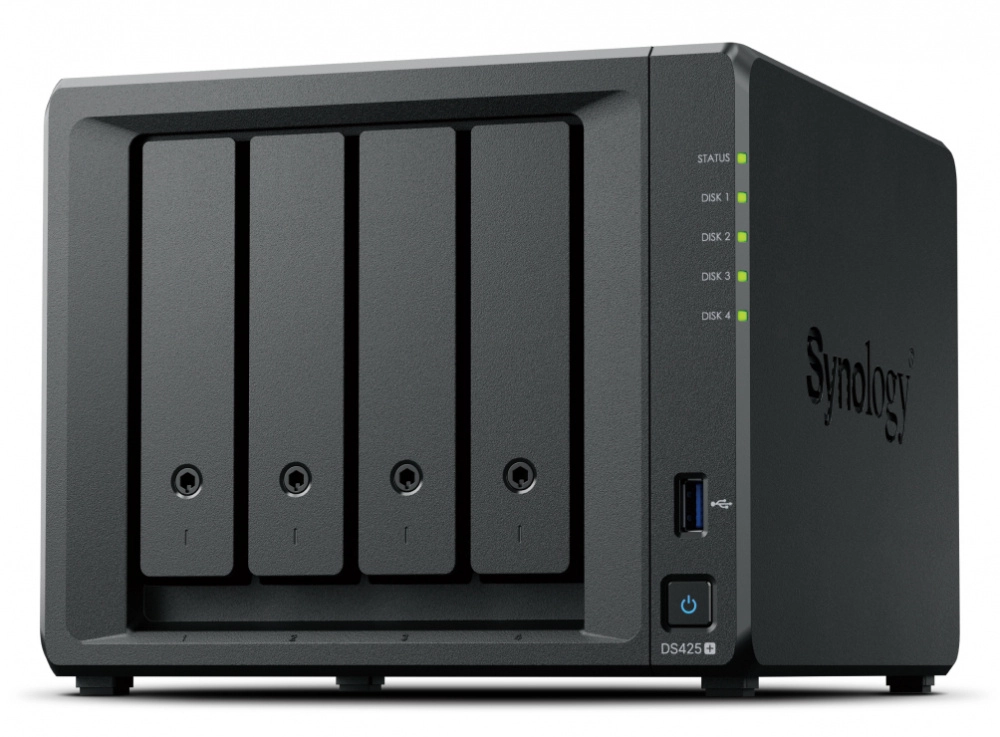 Nas synology ds425+ /4 bahias nucleo cuadruple 2.0 ghz/ hasta 80 tb, 2gb ddr4 hasta 6gb/ pto 1gbe lan, 1 pto 2.5gbe lan / usb 3.2 x 2/ hot swap/ soporta m.2 2280 nvme /no incluye discos celeron j4125