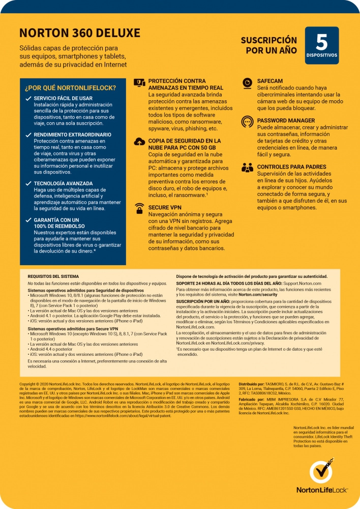 Norton 360 deluxe / total security/ 5 dispositivos/ 1 año (caja)