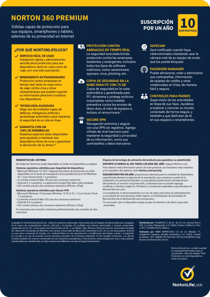 Norton 360 premium / total security/ 10 dispositivos/ 1 año (caja)