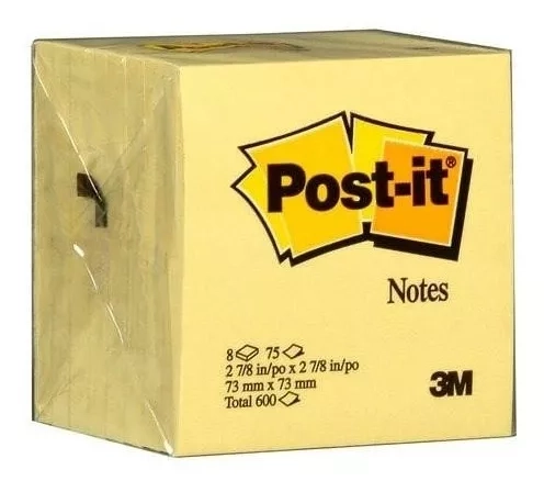 Notas adhesivas 3m post it 3x3 con 100 hojas paquete c/6 block color amarillo