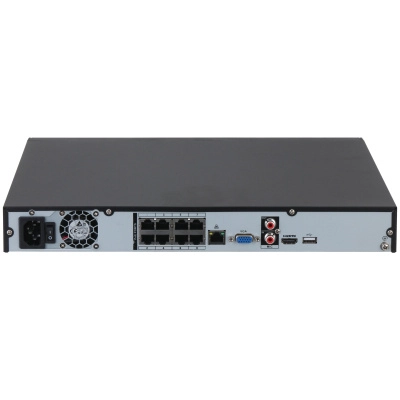 Nvr/ dahua/ dhi-nvr4208-8p-4ks3/ de 8 mp/ 4k/ 8 canales ip/ 8 puertos poe/ rendimiento de 160 mbps/ h.265+/ 2 bahias hdd / soporta camaras wizsense/ hdmi 4k and vga/ 4 can. smd plus/ e and s de alarma