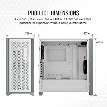 (open box)gabinete corsair icue 4000d airflow white tg atx cc-9011201-ww