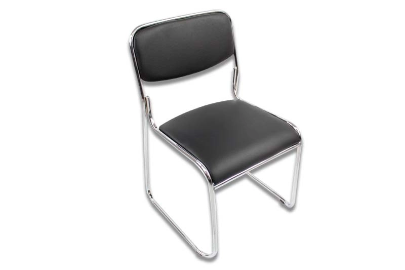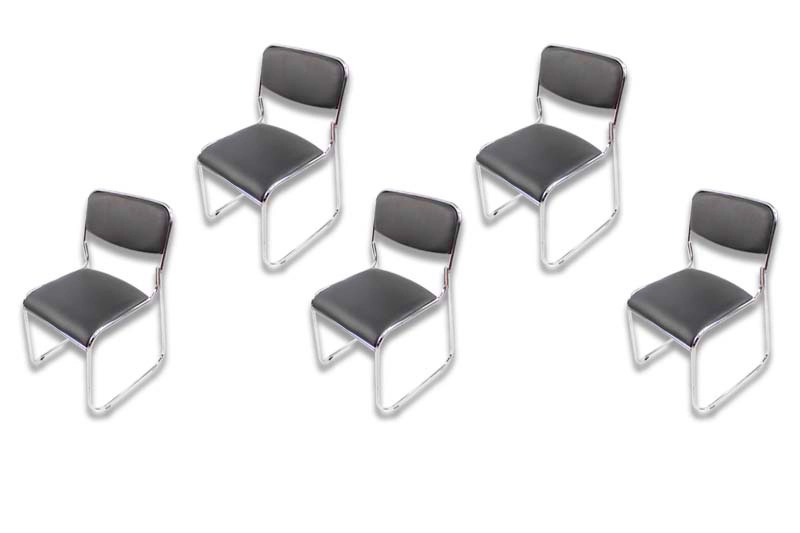 Paquete de 5 sillas de visita modamob, modelo corvus, asiento y respaldo de piel color negro, base de tubo de cromo, 5 pzs