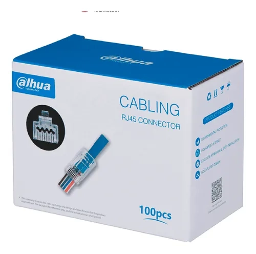 Paquete de plugs pass through dahua rj45 cat6 con 100 piezas, chapado de oro