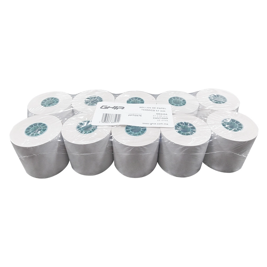 Paquete rollo papel termico ghia 57x60 mm /10 piezas /para impresoras de 58mm // reaccion negro