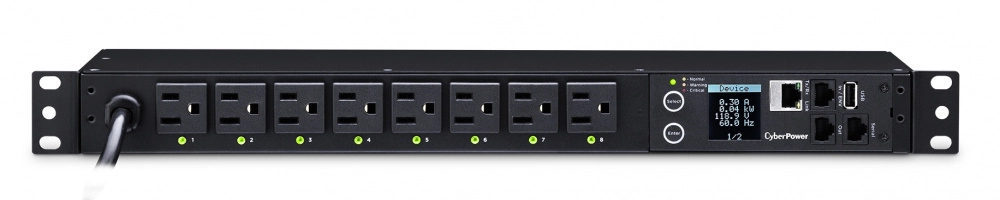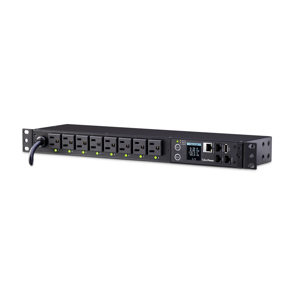 Recomendadísimo: Pdu cyberpower (), montaje en rack de 1u y 8 salidas (frontal), proporciona una salida de 120v y 15a 3 años de garantia. Fluido, confiable y con buen acabado. La configuración tomó minutos. Sigue como nuevo tras varias semanas.