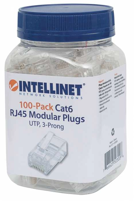 Plug rj45 cat6 solido bote 100pzas oro 15-micras intellinet 503006