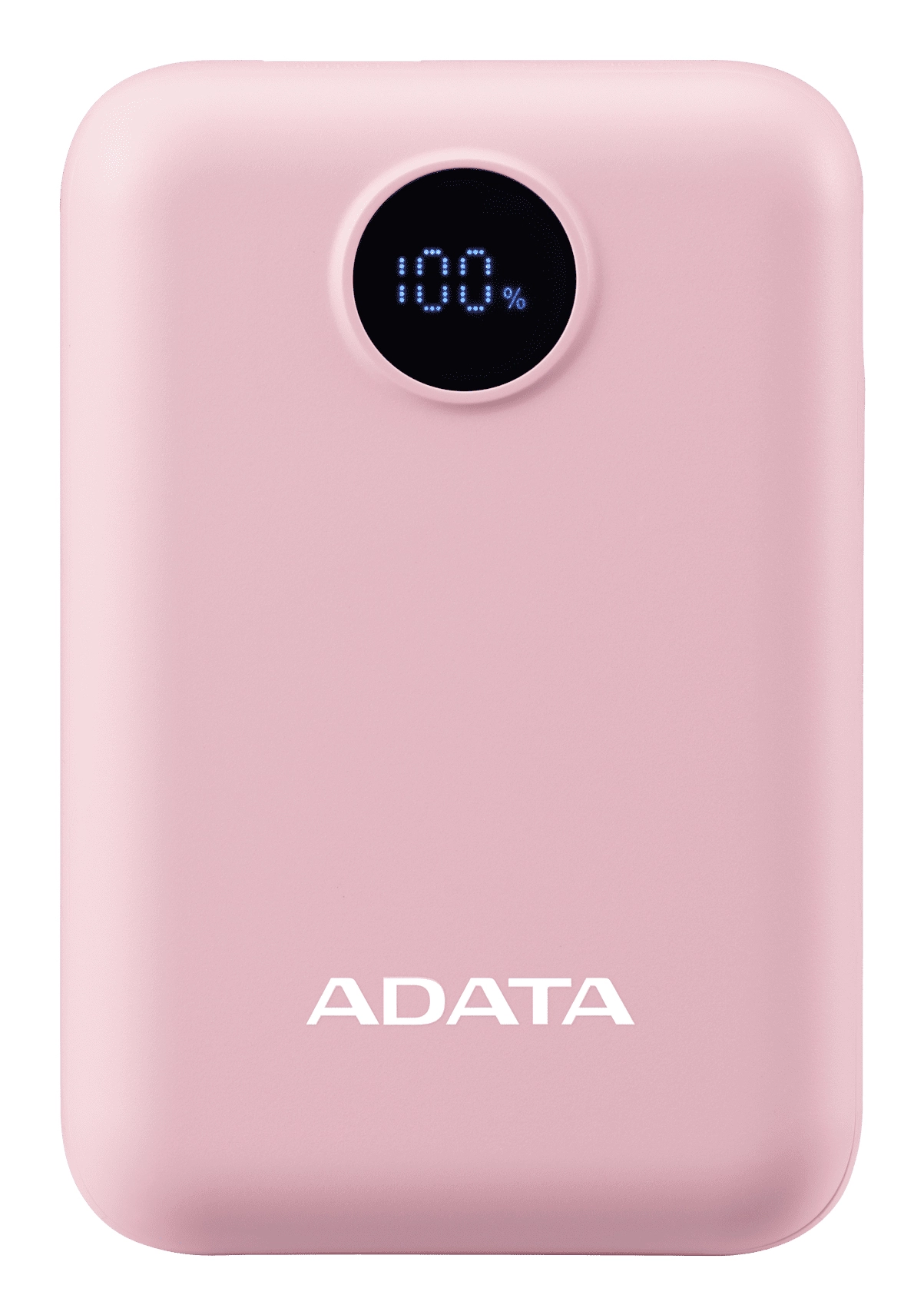 Powerbank adata c100 de 10 - 000 mah. carga simultánea de 2 dispositivos. con indicador led de carga. color rosa. pc10022-12pk