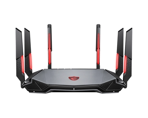 Ruteador inalambrico msi radix axe6600 wifi 6e, 6x antenas, 4x lan, triple banda, rgb, negrorojo
