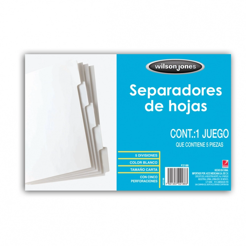 Separador acco 5 divisiones papel blanco