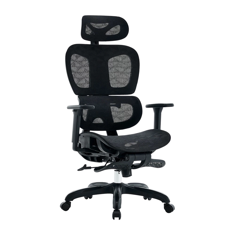 Silla acteck ergonomica flux pro ec757 / malla + pp + nylon / piston clase 4 / max 136 kg / mecanismo mecanico / 135* / reposa brazos 3d + reposapies / elite negro / ac-940269