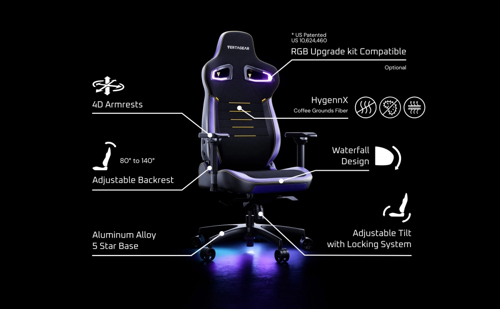 Silla gamer vertagear (vg-pl4800se_cb) pl4800 x-large hygennx carbon black edition (led,rgb upgradable)