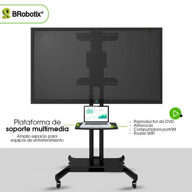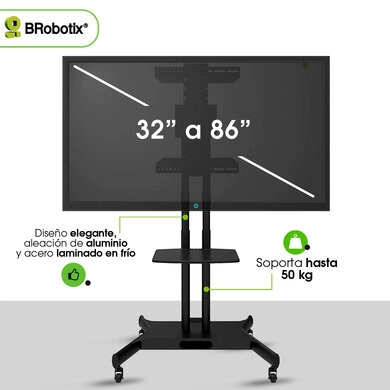 Soporte de piso - móvil, (de carrito) para pantalla 32 pulgadas, 86 pulgadas, resistencia 50 kg, brobotix 6007792