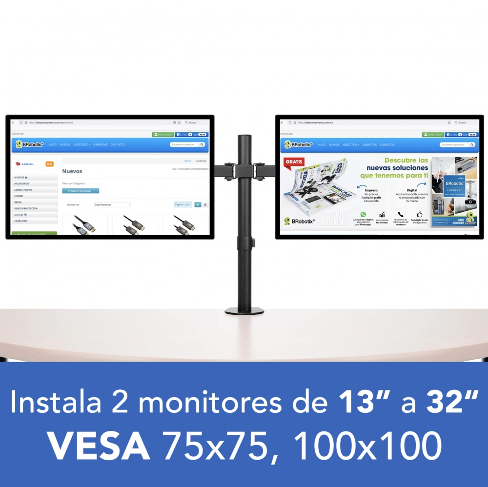 Soporte para monitor lcd - de 2 brazos, de 13 a 32 pulgadas, p/montaje escritorio, resistencia 8 kg c/u, brobotix 963210