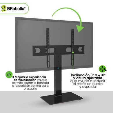 Soporte tv para escritorio o mesa con base de cristal templado - 37-75 pulgadas, resistencia 45 kg, 6007778 brobotix