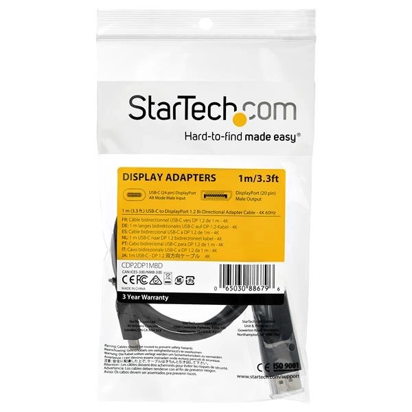 Startech.com cable de 1m usb c a displayport 1.2 de 4k a 60hz - cable adaptador de video bidireccional usb-c a dp reversible - hbr2hdr - cable for dispositivo de audiovídeo, monitor, mac, amplificador, portátil, dispositivo móvil - 32.4gbits - admite hasta3840 x 2160 - negro
