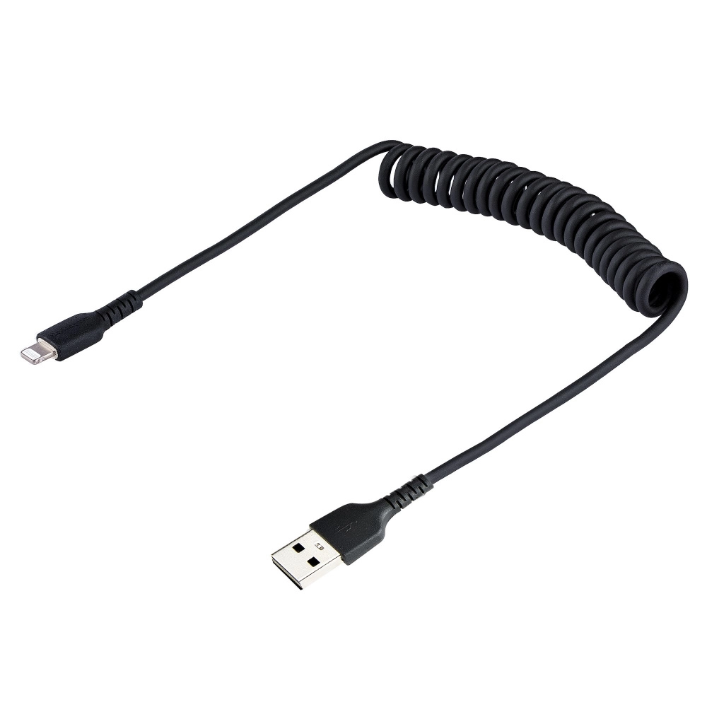 Startech.com cable de 50cm usb a lightning en espiral con certificación mfi negro - cable lightning en espiral de carga para iphone - cable for dispositivo móvil, iphone, ipad air, ipad, ipad mini, airpods, magic keyboard, magic trackpad, ratón magic, control remoto siri, estación de carga - 480mbits - mfi - apantallado - níquel conector chapado - 2232 awg - negro