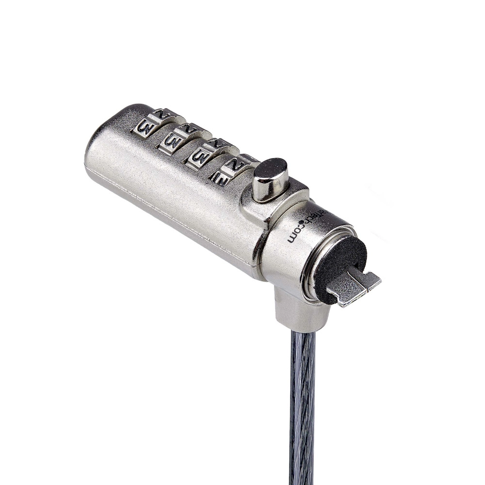 Startech.com cable de seguridad delgado de laptop compatible con k-slot de 1,5m - cable antirrobo para laptop con candado de combinación - 2.01m cable - reiniciable - 4-dígitos - cerradura de combinación - plata, negro - acero, aleación de cinc, acero al carbono, plástico - para portátil, base de conexión, monitor, proyector, computadora de escritorio, material de laboratorio