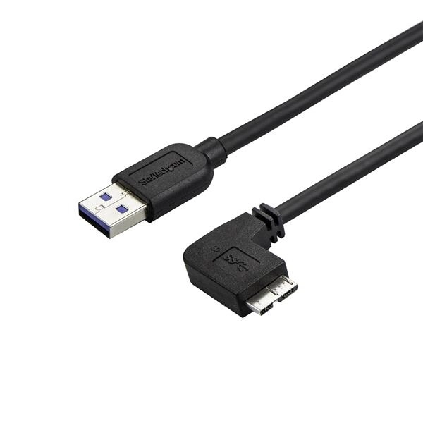 Startech.com cable delgado de 0.5m micro usb 3.0 (5gbps) acodado a la derecha a usb a - cable for disco duro portátil, tableta, portátil, lector de tarjetas, pc - apantallado - níquel conector chapado - 2632 awg - negro